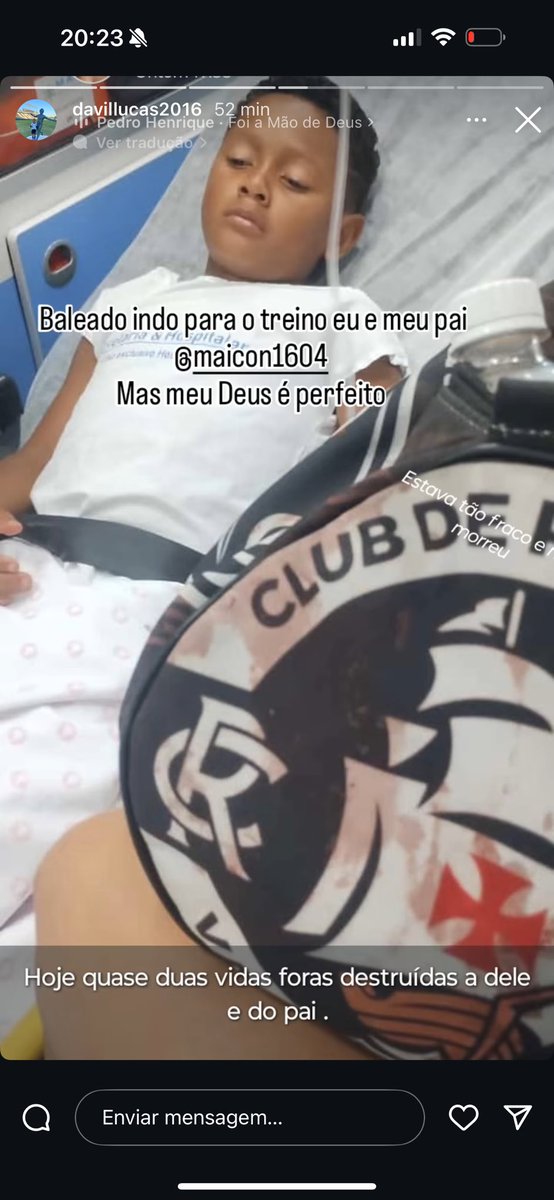 Vasco está dando apoio a Davi Lucas, atleta da base baleado nesta 4ª-feira