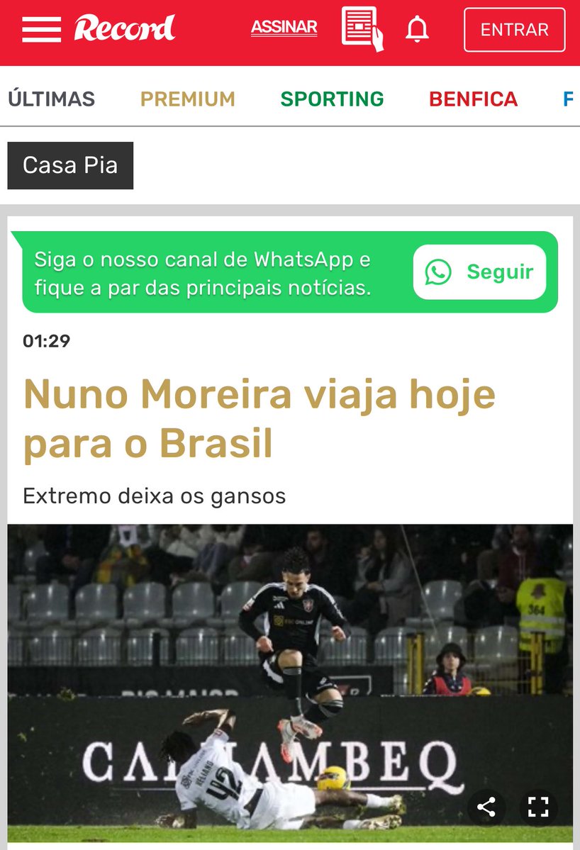 Segundo o @Record_Portugal, Nuno Moreira está vindo para o Brasil hoje. Será que vem no mesmo voo de Benjamin Garré?