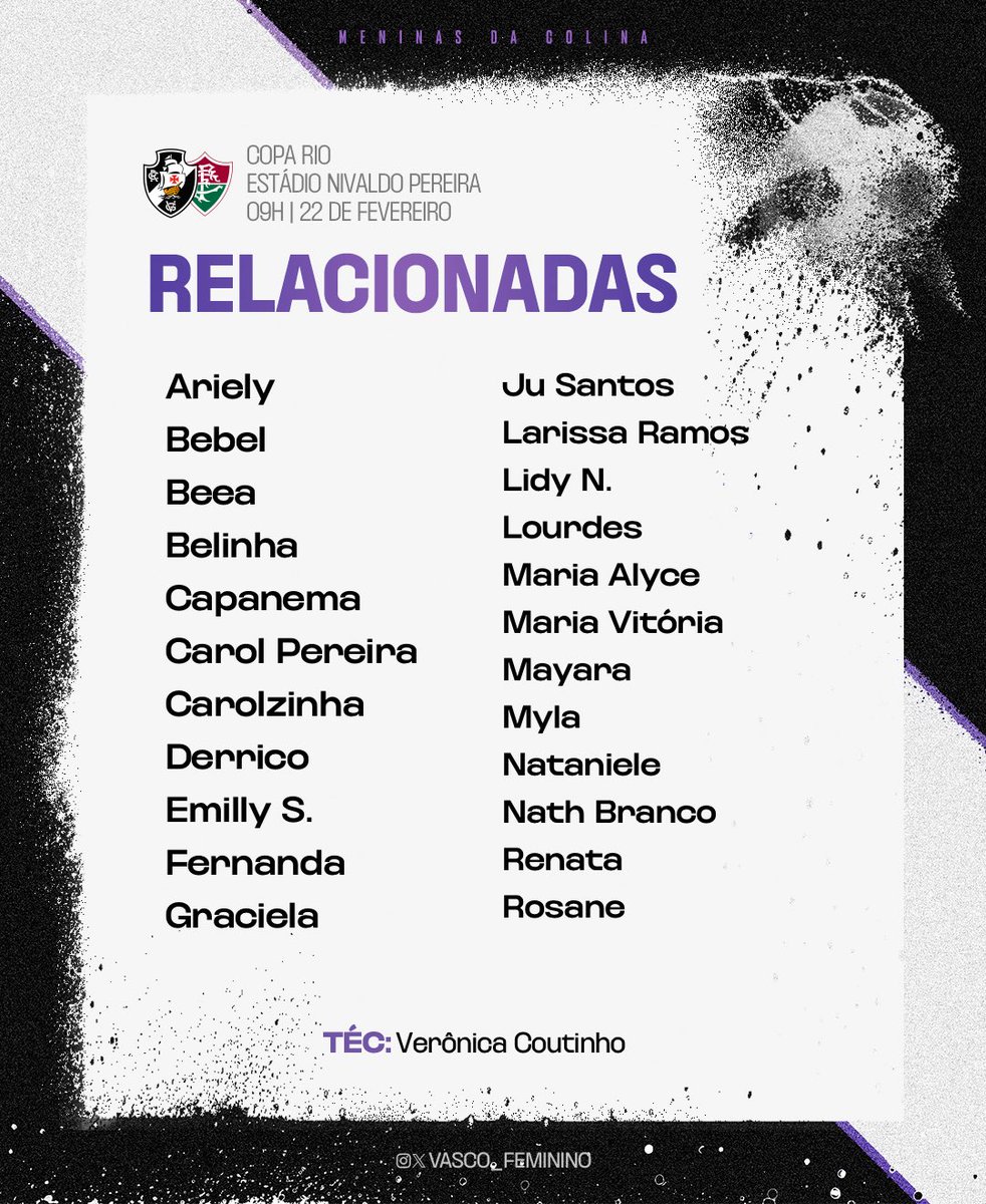 📋 As atletas relacionadas pela técnica Verônica Coutinho para o clássico diante do Fluminense.