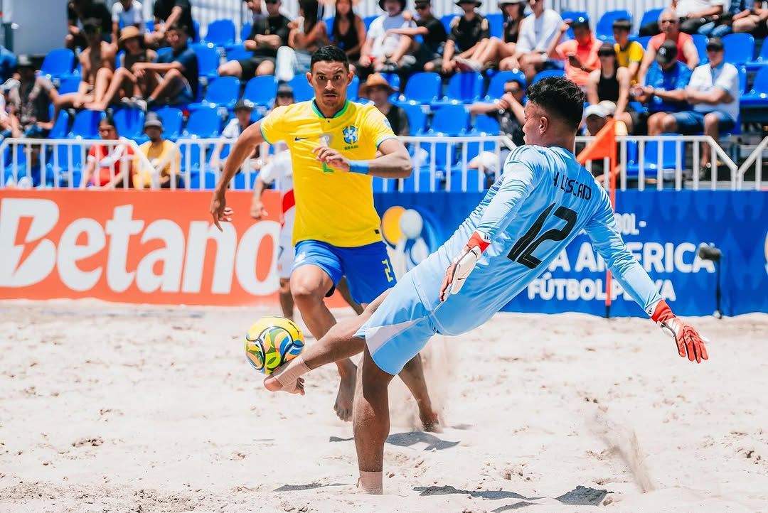 A Seleção Brasileira de beach soccer começou sua caminhada rumo a classificação para a Copa do Mundo FIFA – Ilhas Seicheles 2025 com o pé direito. Na primeira rodada da Copa América, competição onde os três primeiros garantem a vaga no Mundial, o Brasil goleou o Peru por 9 a 4 e assumiu a liderança do Grupo A, que ainda conta com Venezuela, Paraguai e Argentina. No outro jogo do grupo, a Venezuela surpreendeu e venceu o Paraguai por 7 a 5. Os argentinos folgaram.