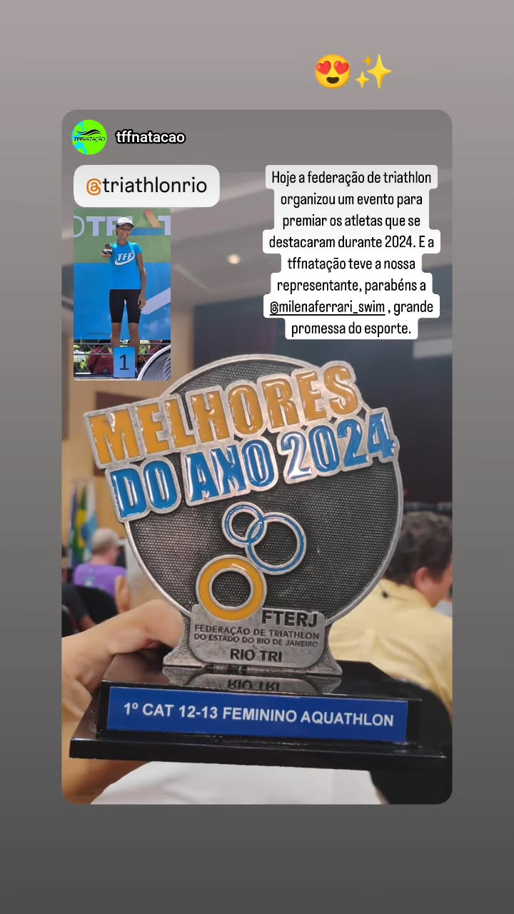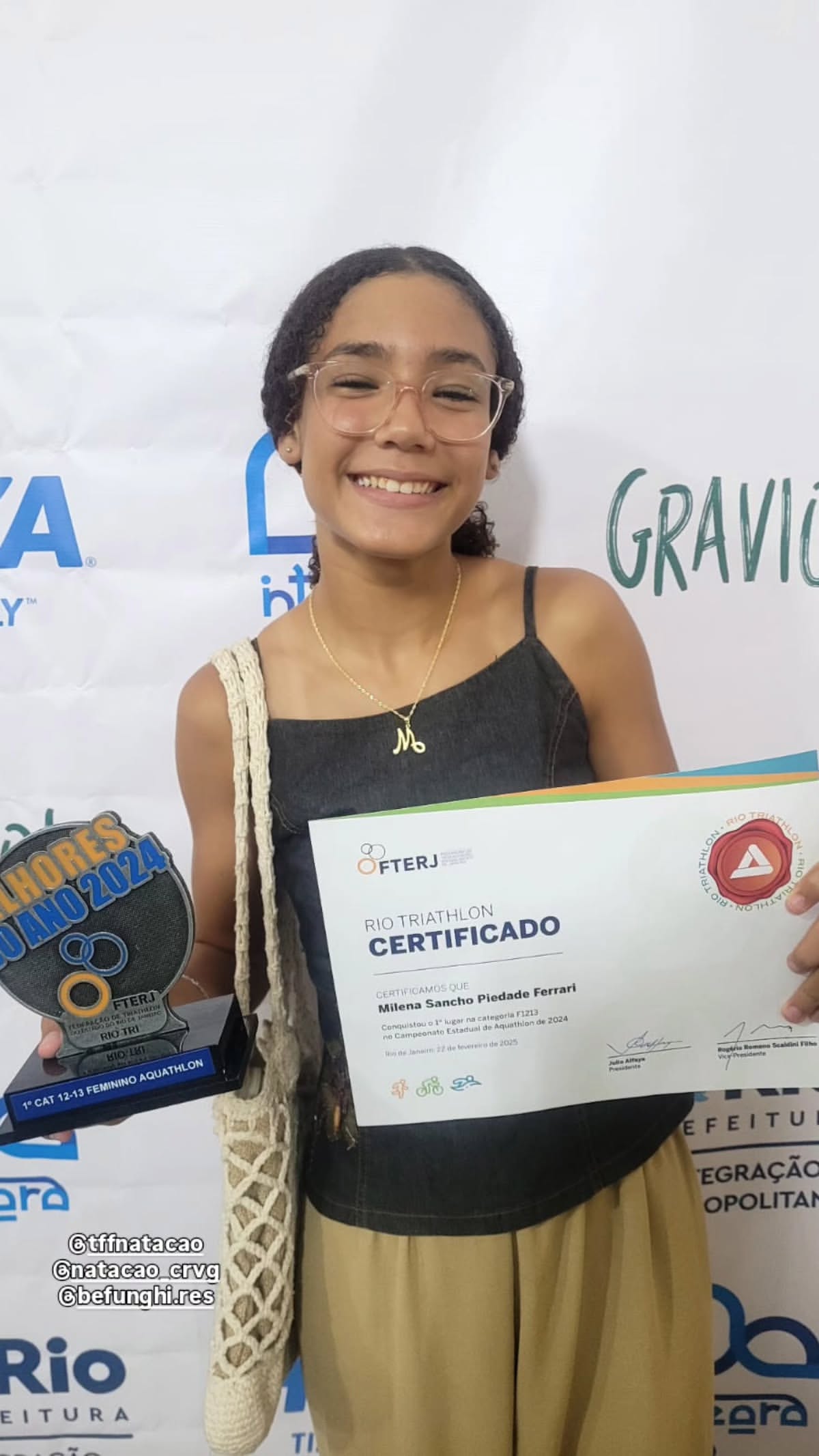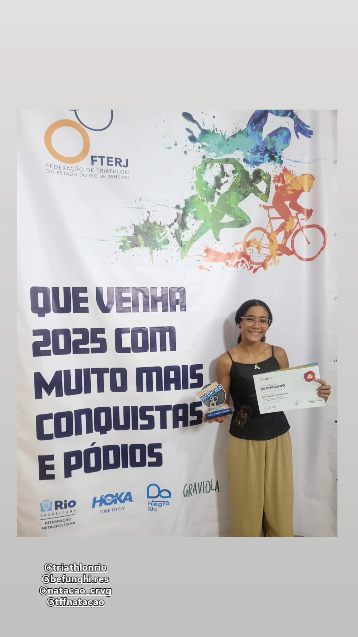 Aquatlo: Campeões estaduais de 2024, Milena Ferrari e Miguel Oliveira são premiados pela Federação de Triatlo do RJ