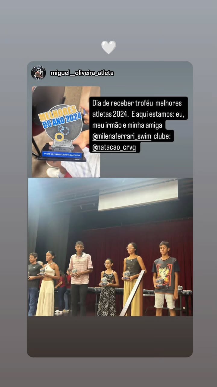 Fonte: Instagram da nadadora Milena Ferrari, Instagram do nadador Miguel Oliveira