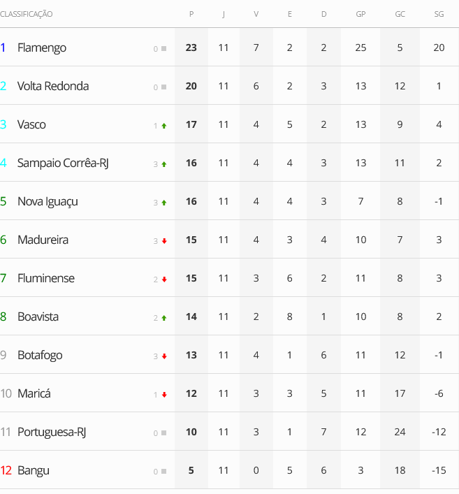 Intervalo também de Fluminense 1 x 1 Bangu e Nova Iguaçu 1 x 0 Madureira. Com resultados de momento, Sampaio Corrêa e Vasco vão se classificando. As semifinais seriam Flamengo x Sampaio Corrêa e Volta Redonda x Vasco. E com a derrota, o Botafogo vai caindo para nono lugar e ficaria fora até da Taça Rio.