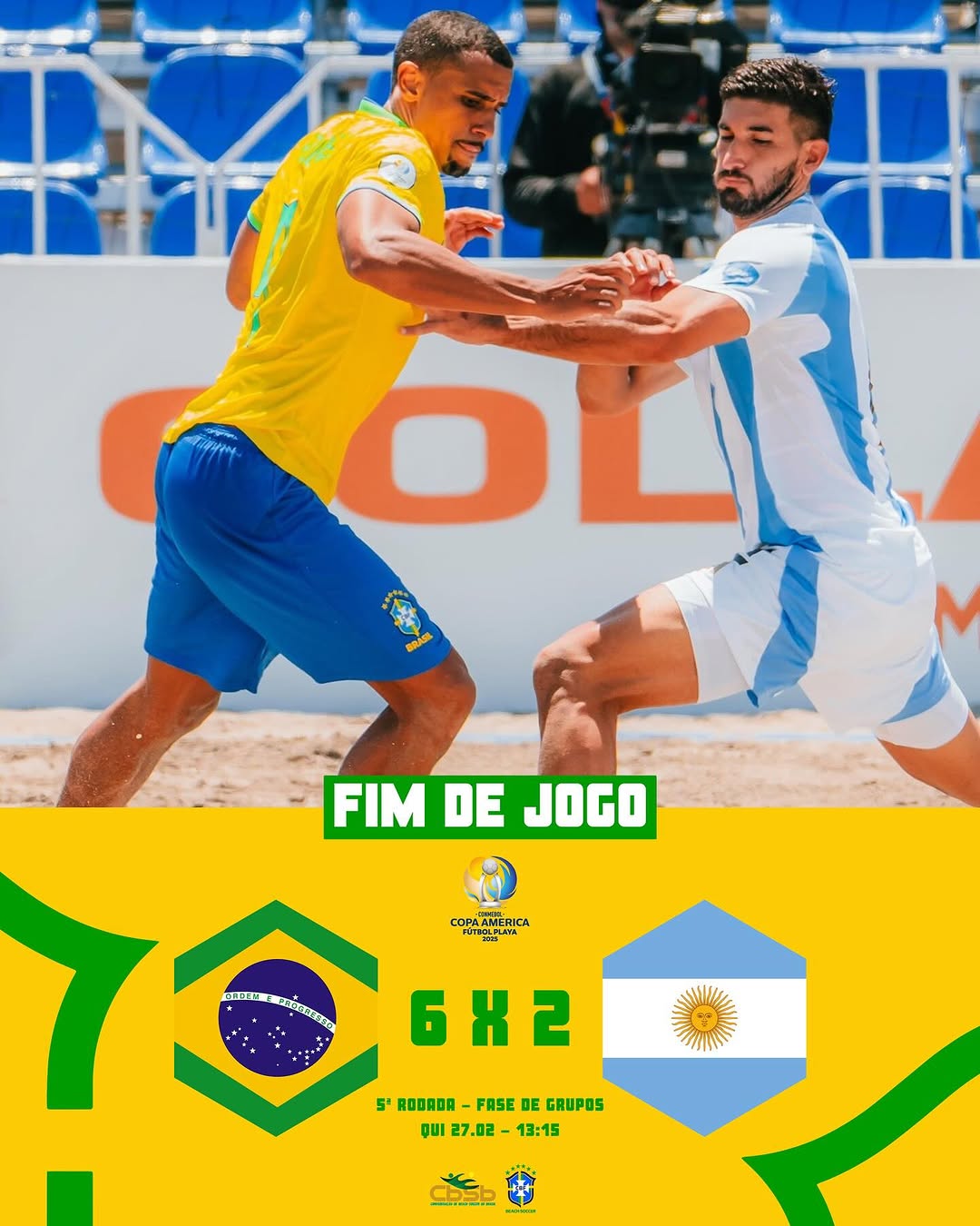 A Seleção Brasileira venceu a Argentina nesta quinta-feira (27), pela última rodada da Copa América de Futebol de Areia e garantiu sua vaga nas semifinais.