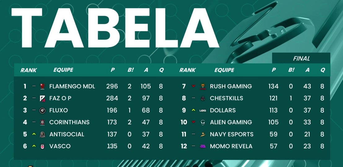 23/02/25 - E-Sports: Vasco termina o 1º dia da final da Copa FF de Free Fire na 8ª colocação