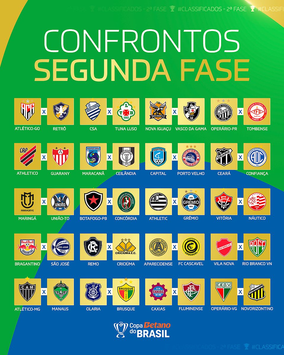 Os 2️⃣0️⃣ confrontos da 2ª fase da #CopaBetanoDoBrasil 🇧🇷 estão definidos!
