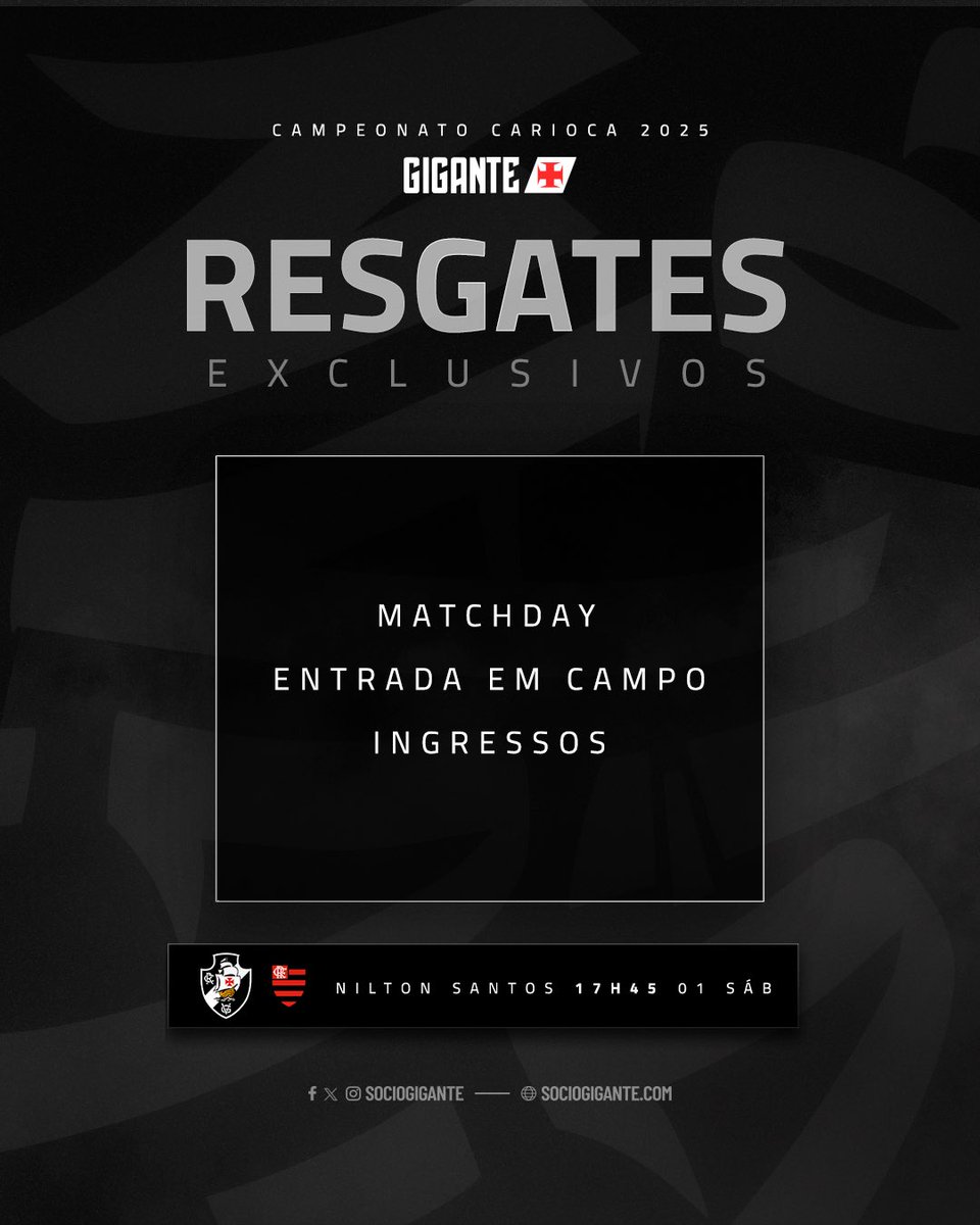 Sócios do Vasco terão resgates para o jogo contra o Urubu a partir das 12h desta 6ª-feira