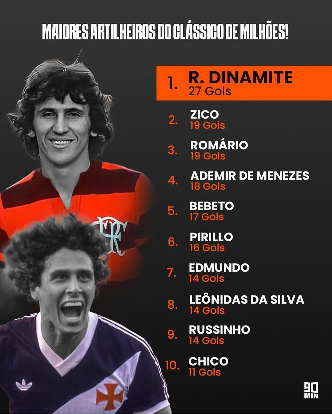 Com 27 gols, Roberto Dinamite é disparado o maior artilheiro do confronto Vasco x Urubu