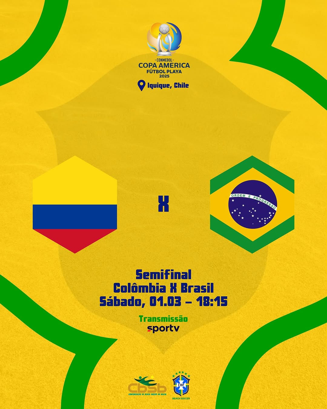 Beach Soccer: Brasil de Mauricinho e Benjamin Jr. faz semifinal da Copa América contra a Colômbia neste sábado às 18h15 com sportv