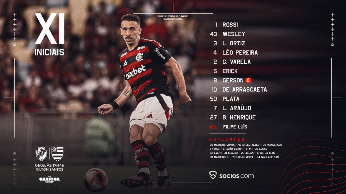 Veja a escalação do Urubu para o jogo contra o Vasco