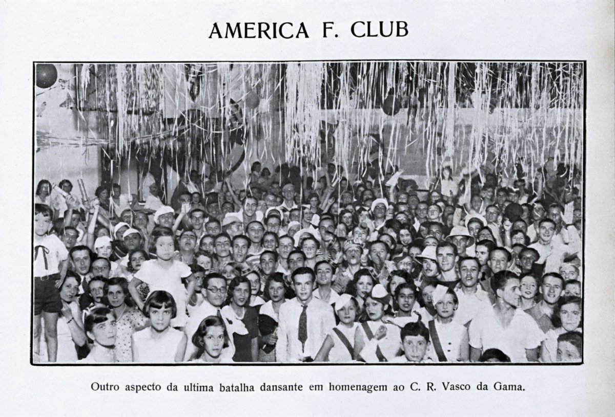 O VASCO NO CARNAVAL - 1934 - Batalha dançante de confetes - Curiosa homenagem do America Football Club ao Club de Regatas Vasco da Gama. (Revista Careta)