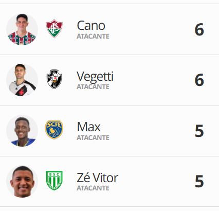 Vegetti, do Vasco, passou a ter a companhia de Germán Cano, do Fluminense, na artilharia do Campeonato Carioca. Ambos têm 6 gols. O vascaíno passou em branco no clássico diante do Flamengo e o tricolor marcou um gol contra o Volta Redonda.
