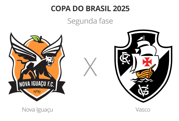 Nova Iguaçu e Vasco se enfrentam pela segunda fase da Copa do Brasil, nesta quarta-feira, às 21h30 (de Brasília), no Estádio Nilton Santos. Premiere e sportv transmitem, e o ge acompanha tudo em Tempo Real (