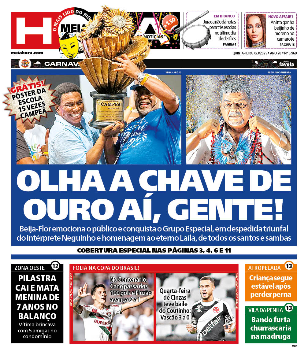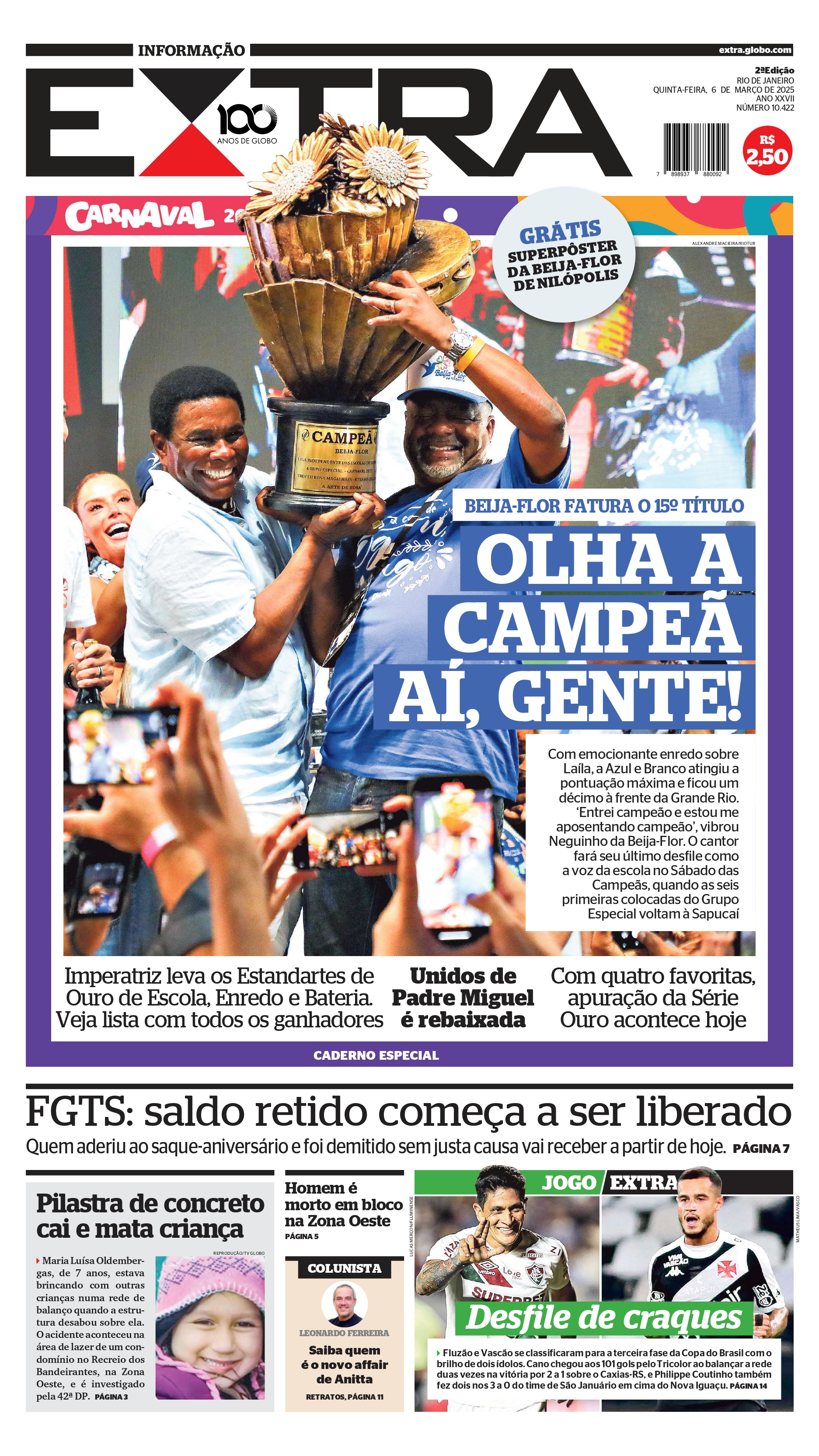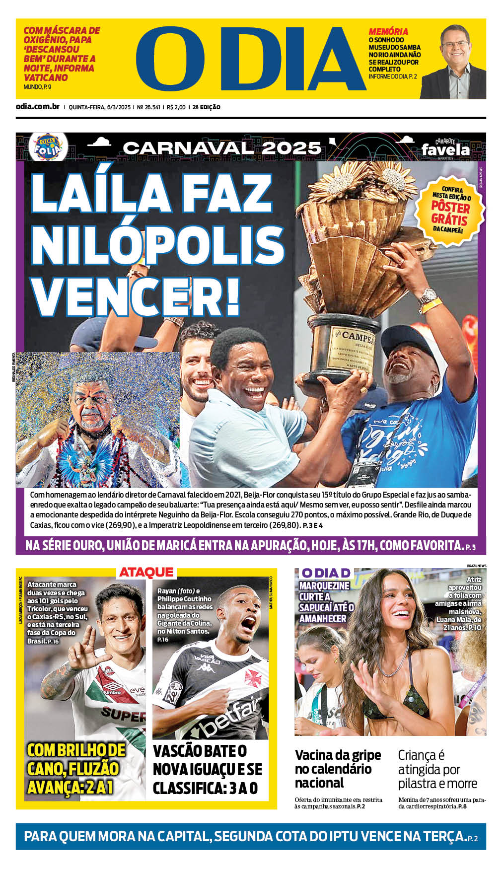 Veja as capas dos jornais após Nova Iguaçu 0 x 3 Vasco