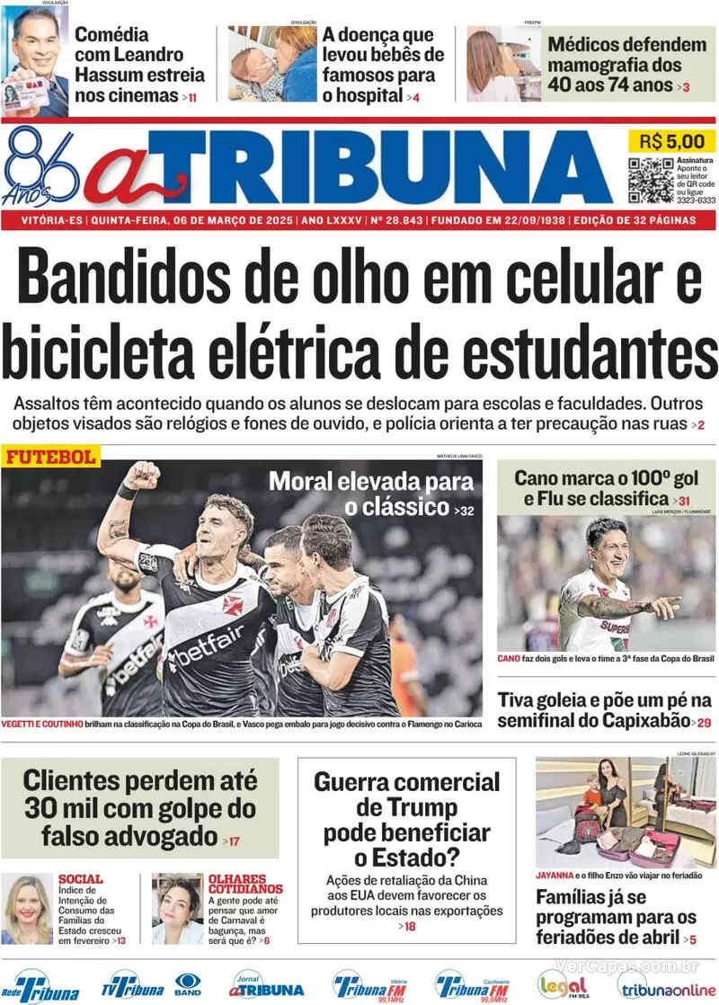 Pela 2ª fase da Copa do Brasil, o Vasco derrotou o Nova Iguaçu por 3 a 0, gols de Rayan e Philippe Coutinho (2), e se classificou para a 3ª fase da competição. Veja as capas dos jornais.