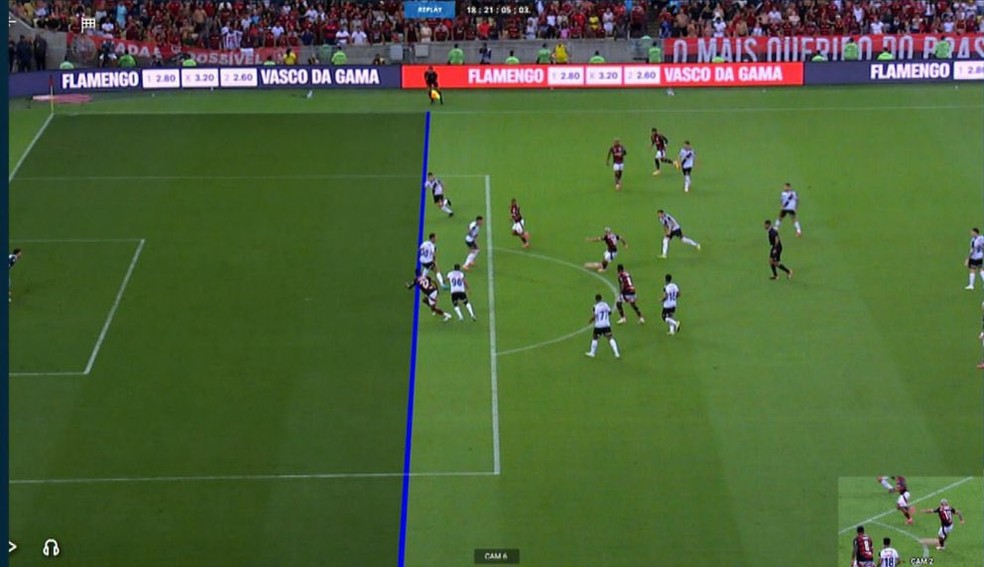 - Visualmente, olhando a imagem parada, mesmo ainda não sendo o frame que o VAR usou, a impressão é que o Bruno Henrique está um pouco à frente em relação ao João Victor. Mas outro detalhe importante dessa imagem é que não conseguimos ver o pé do João. Na imagem parada, para mim, o penúltimo defensor do Vasco é o João, porque essa linha passa bem além do braço do Piton. Por isso acredito que é importante a Ferj mostrar a construção da linha, para sabermos qual foi a referência. Provavelmente, (o VAR) usou outro ângulo para poder identificar a posição do pé, identificou, marcou a posição e depois traçou a linha pela câmera de impedimento. Por essa imagem (da transmissão), não dá para ver o pé do João Victor - opinou PC.