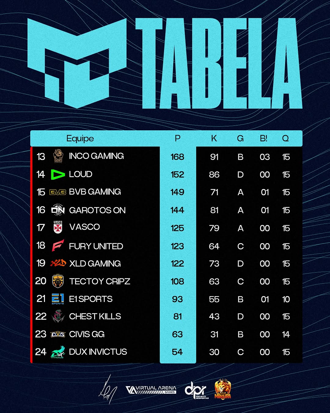 E-Sports: Vasco está na 17ª colocação na Liga Marinho de Free Fire