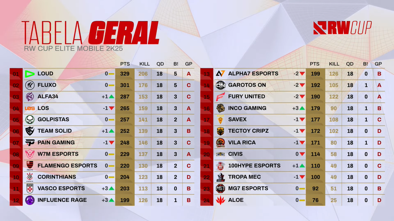 E-Sports: Vasco está na 11ª posição na RW Cup Elite de Free Fire