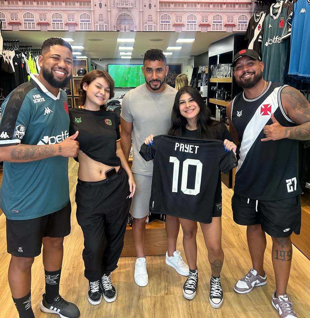 Payet vai a loja Gigante da Colina e tira foto com vascaínos