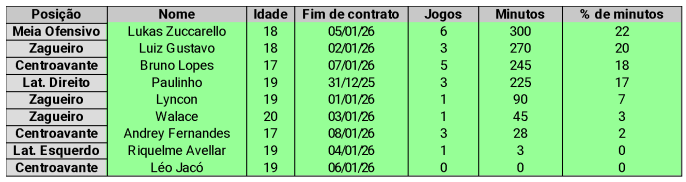 No total, somente nesses 15 primeiros jogos da temporada foram usados 40 jogadores diferentes. Zé Gabriel já saiu, mas também foi utilizado.