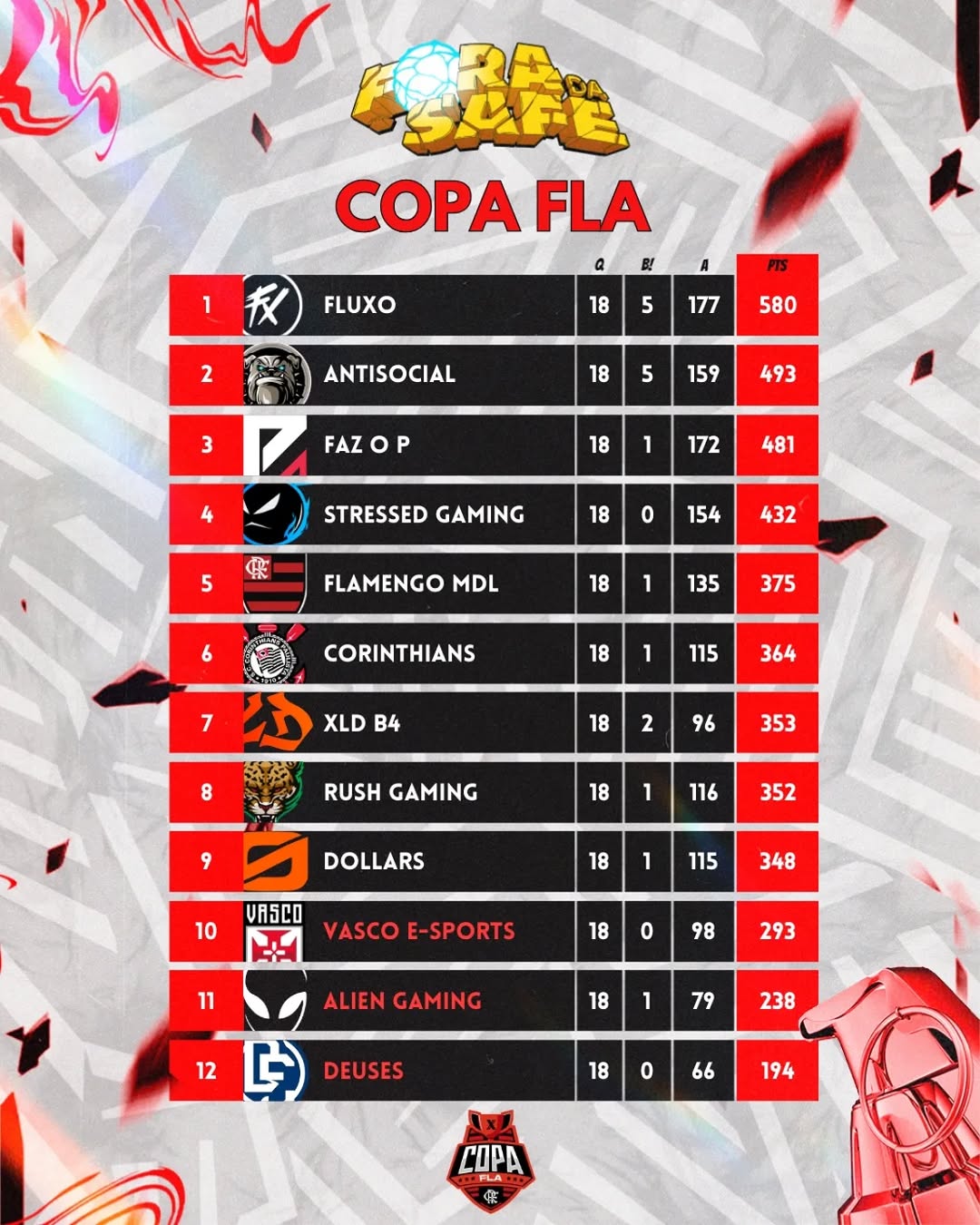 DOMÍNIO DO FLUXO! Assim terminou a tabela da Season 3 da Copa FLA: 👇🏻