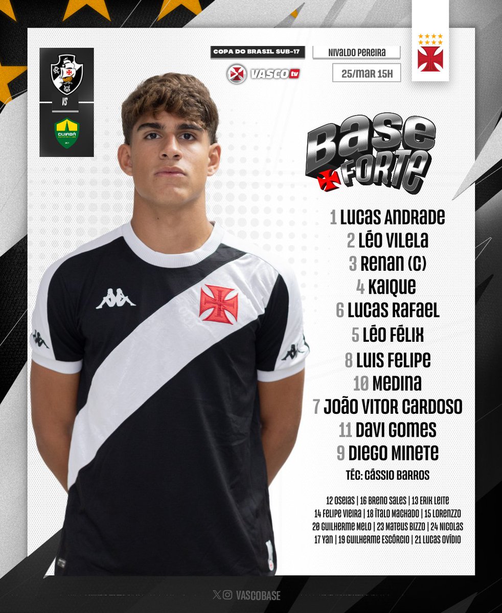 Sub-17: Confira a escalação do Vasco para o jogo contra o Cuiabá