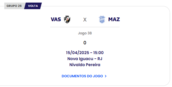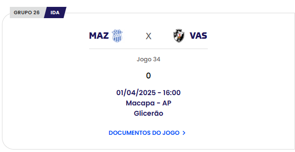 25/03/25 - Sub-17: Adversário do Vasco nas quartas da Copa do Brasil será o Mazagão, do Amapá, com o 2º jogo o Rio
