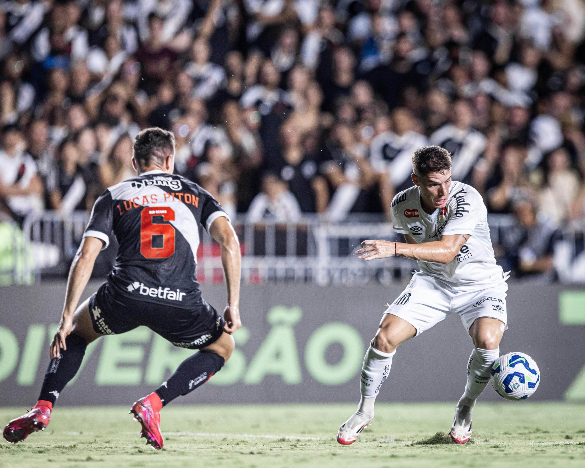 Com 24, em mais uma investida do Vasco, Gabriel Brazão teve de salvar o Santos, que sofria grande pressão dos cariocas. Lucas Pitón recebeu na ponta esquerda e deu cruzamento preciso para a área, onde Vegetti subiu mais que os marcadores e deu uma tijolada de cabeça, mas o goleiro do clube paulista fez uma defesa espetacular.