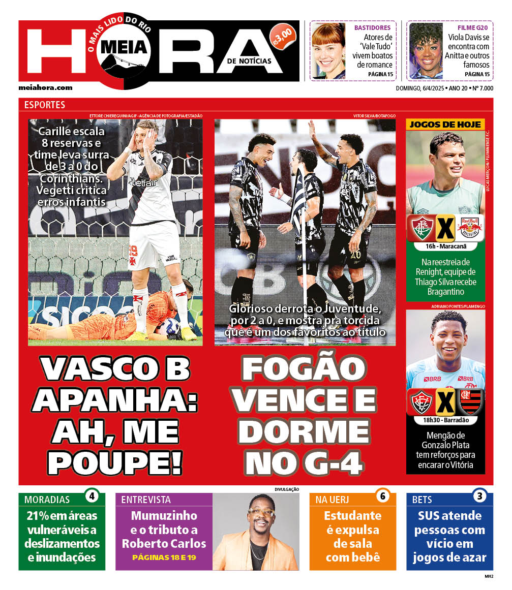 Pelo Campeonato Brasileiro, o Vasco foi derrotado pelo Corinthians por 3 a 0 no Itaquerão. Veja as capas dos jornais.