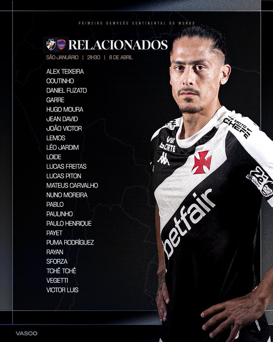 📋 Os relacionados do 𝒱𝒶𝓈𝒸ℴ 𝒹𝒶 𝒢𝒶𝓂𝒶 para a partida diante do Puerto Cabello 💢