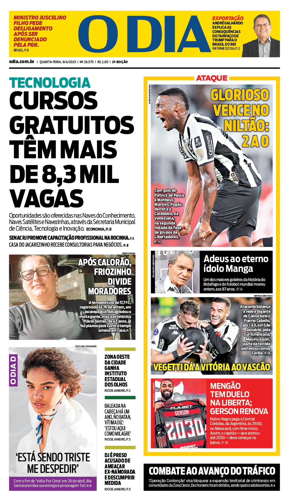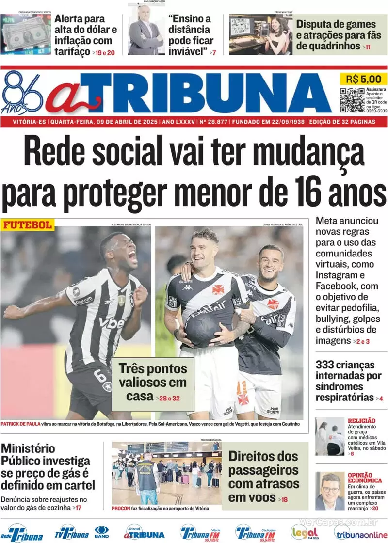 Pela Copa Sul-Americana, o Vasco derrotou o Puerto Cabello por 1 a 0 em São Januário, gol de Vegetti. Veja as capas dos jornais.