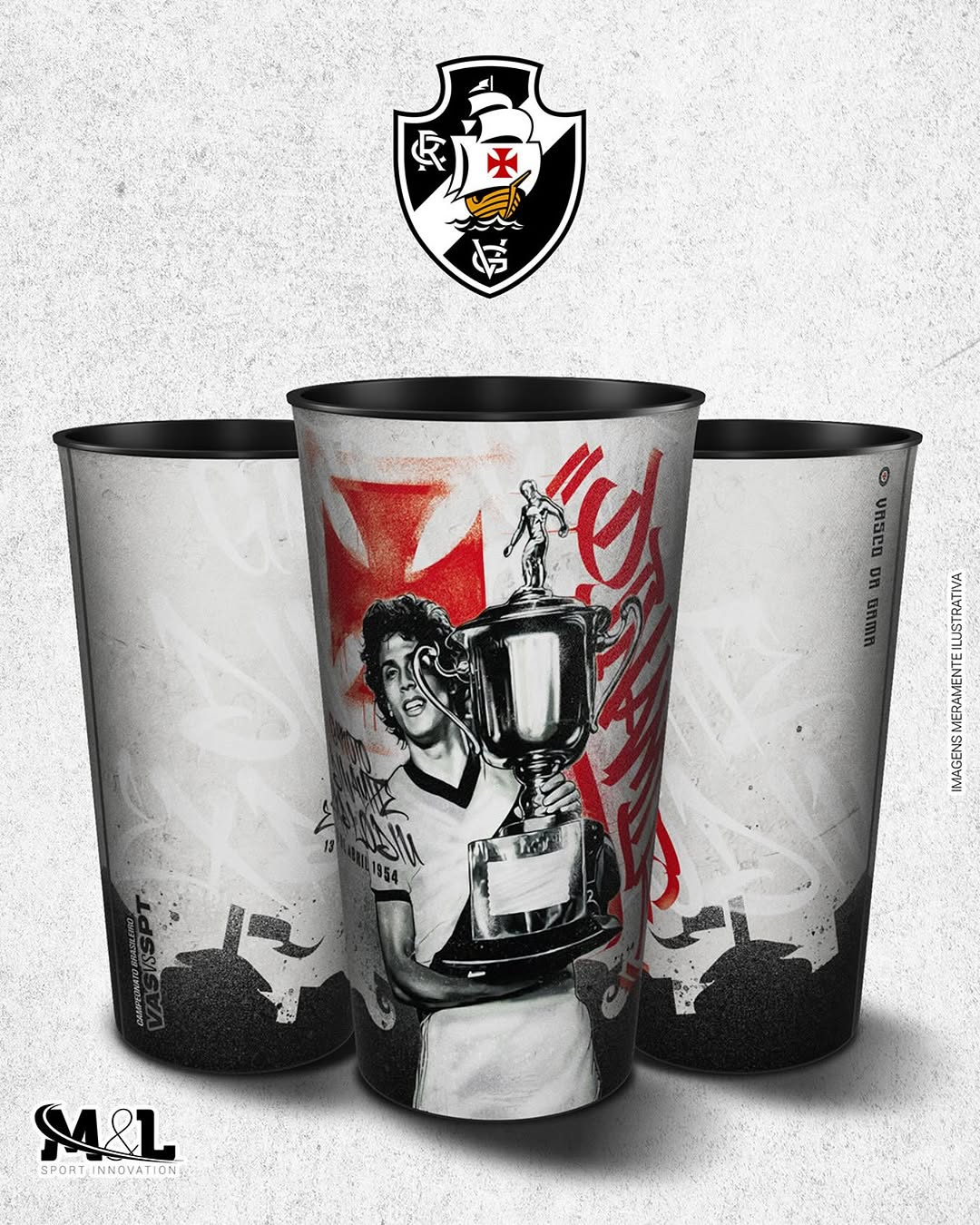Veja o copo do Vasco em homenagem a Roberto Dinamite que estará à venda neste sábado em São Januário