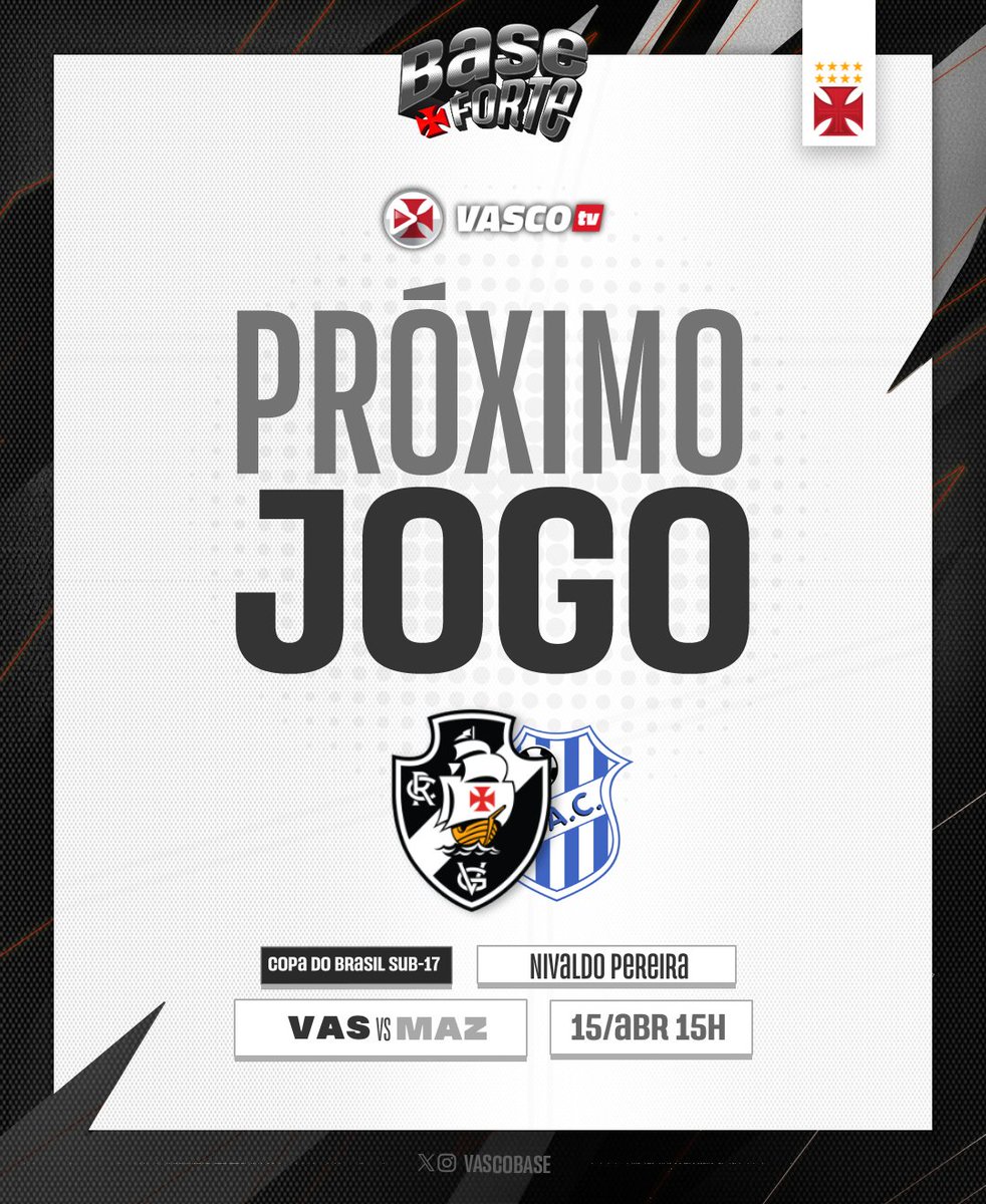 Os #MeninosDaColina voltam a campo nesta terça (15), às 15h, para enfrentar o Mazagão pela partida de volta das quartas de final da Copa do Brasil Sub-17, no Nivaldo Pereira, com transmissão da VascoTV!