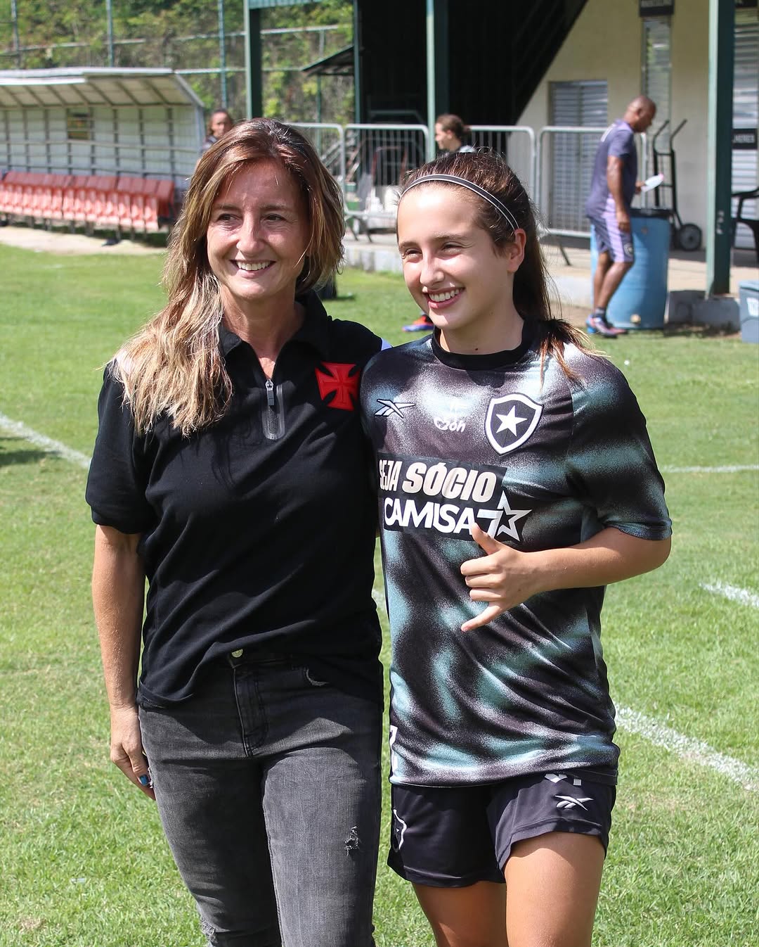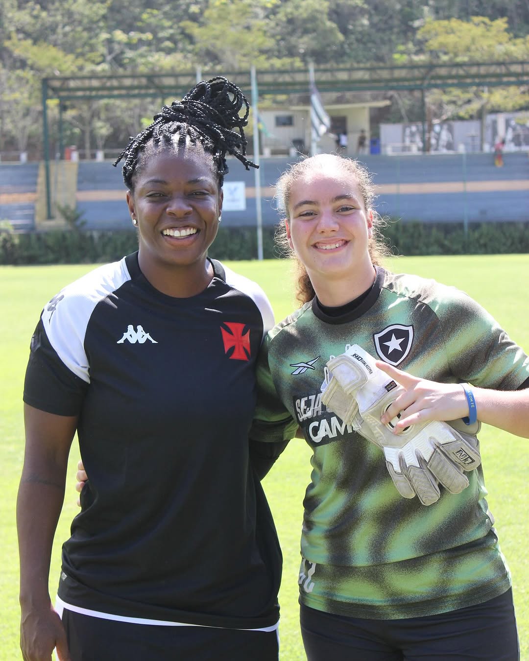 No amistoso de sexta (18) contra o Botafogo, rolou aquele encontro especial com a goleira Julia e a atleta Mariana, que já passaram pelo CF4 e jogaram com a gente no Bangu. Hoje elas seguem trilhando novos caminhos no futebol. É sempre bom ver atletas que fizeram parte da nossa história brilhando por aí! ⚽️