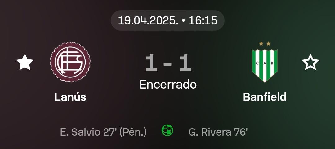 Com esse empate, o Lanús fica na 16ª colocação, com 17 pontos em 14 jogos.