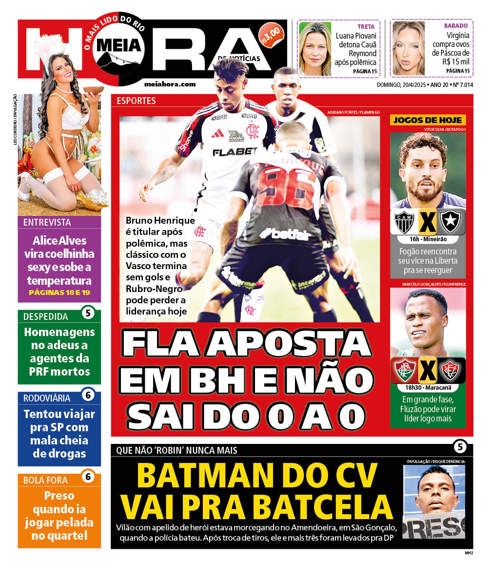 19/04/25 - Veja como a imprensa destacou o empate entre Vasco e Urubu