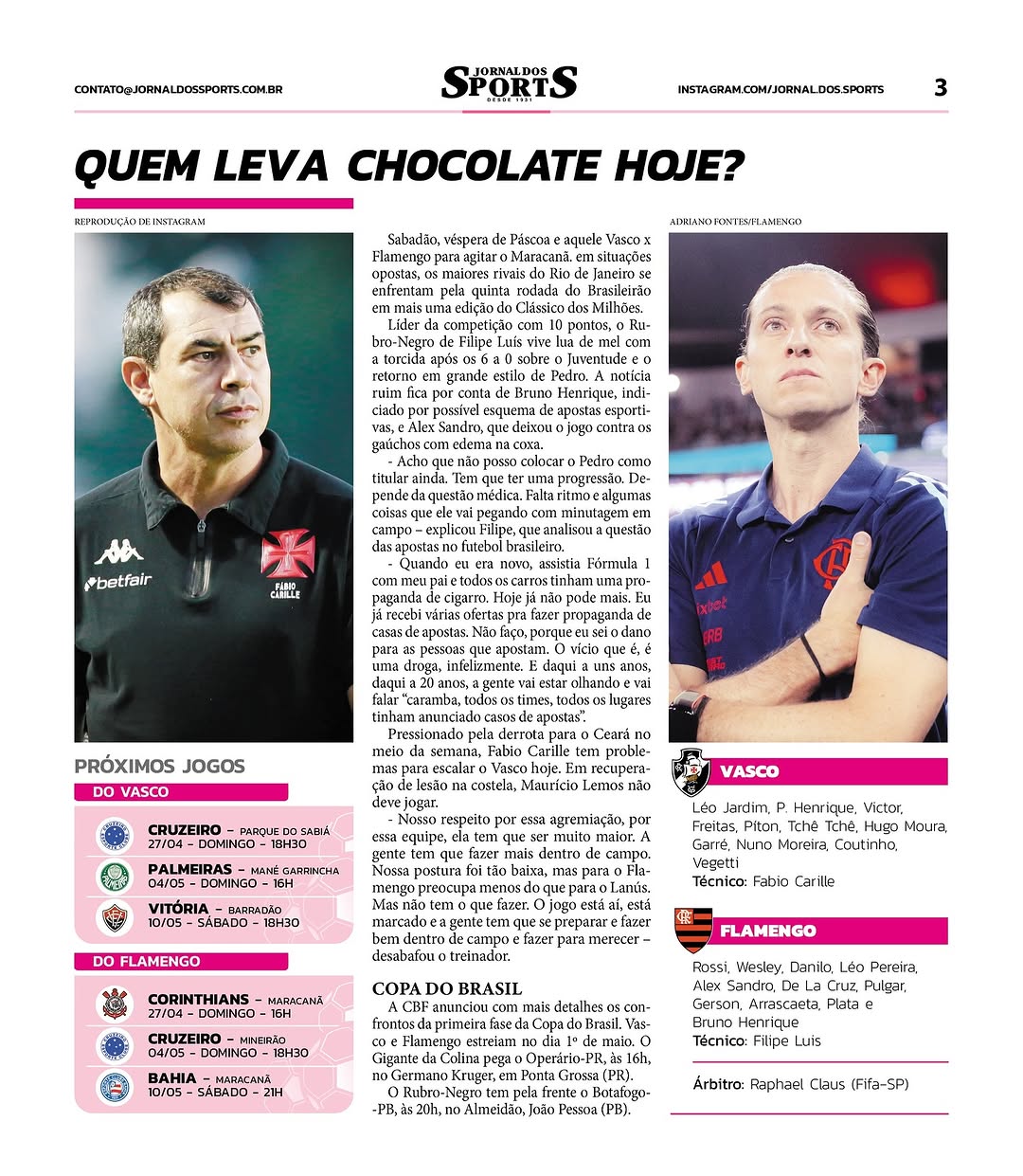 Veja a edição especial do Jornal dos Sports sobre o clássico Vasco x Urubu deste sábado