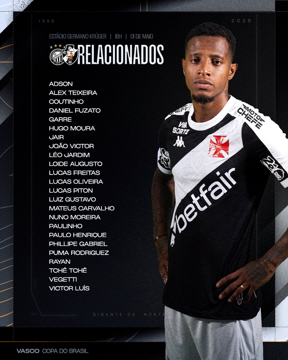 📋 Os relacionados do Vasco da Gama para a viagem rumo ao Paraná 🛫💢
