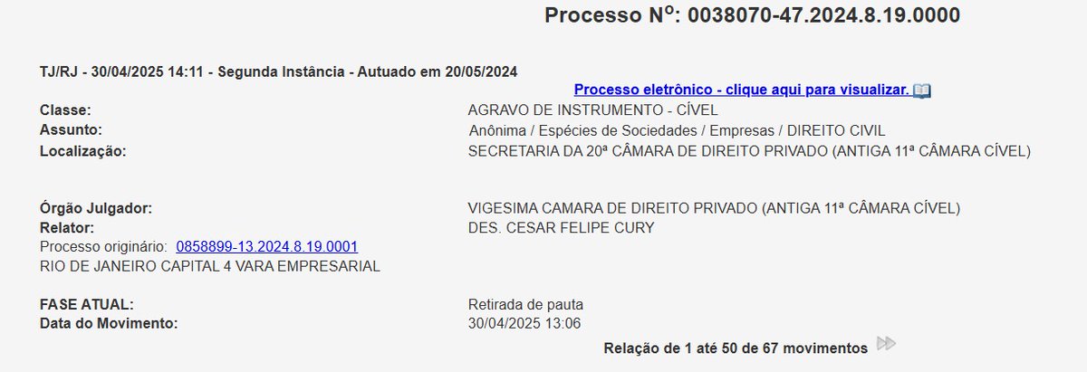 Retirado de pauta o jugamento da liminar que mantem o CRVG como administrador da Vasco Saf. Julgamento que seria no próximo dia 07/05, agora está sem data.