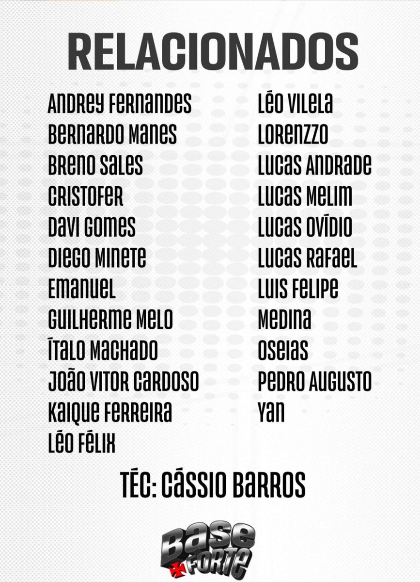 Esses são os jogadores que estarão hoje, às 18h, lutando pra buscar o título da Copa do Brasil Sub-17. Os comandos pelo técnico Cássio Barros enfrentarão o Bahia, em jogo único, no Luso Brasileiro, na Ilha do Governador. Transmissão ao vivo do SporTV.