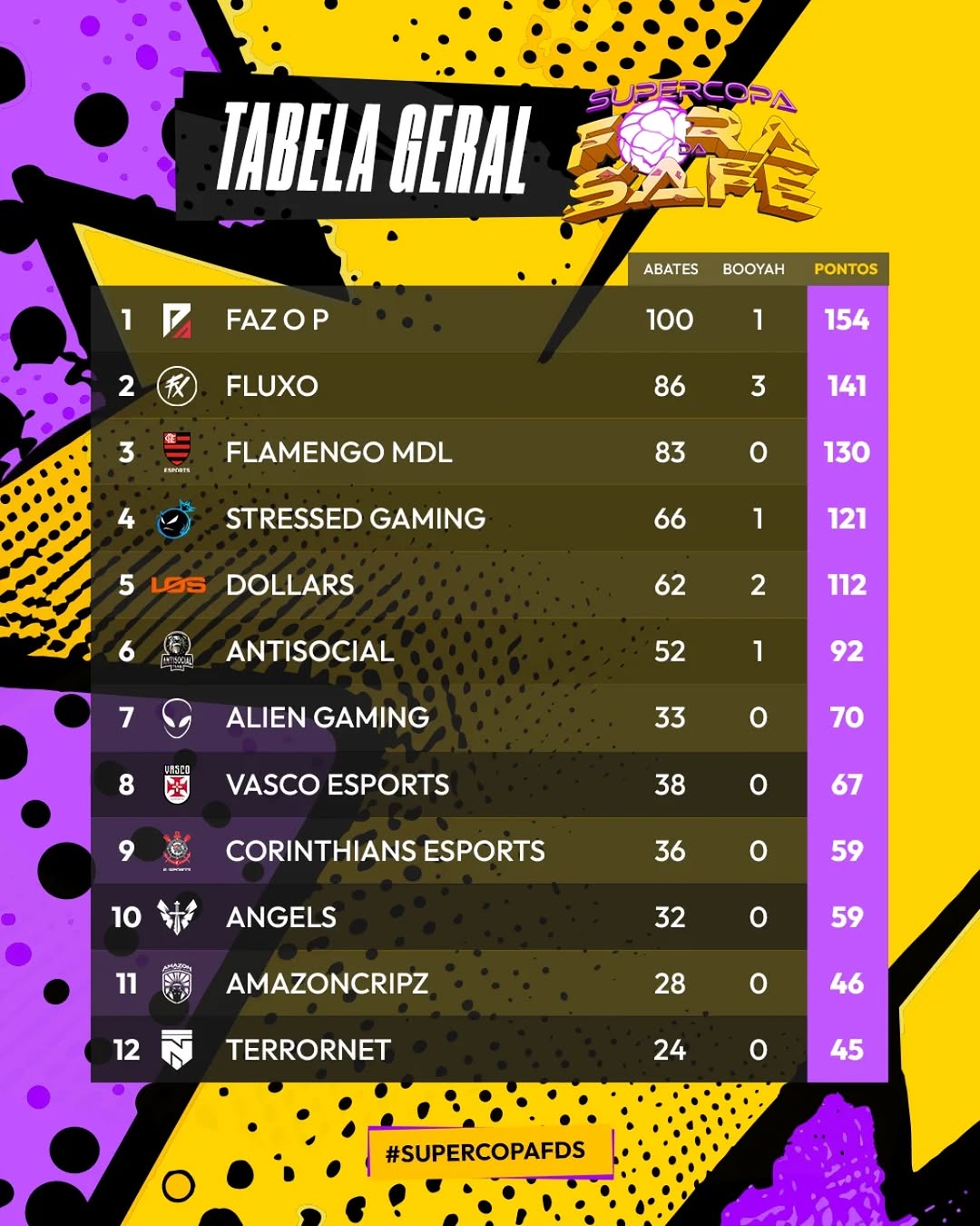 POINT RUSH DE #SUPERCOPAFDS FINALIZADO! Confira a tabela 👇🏻