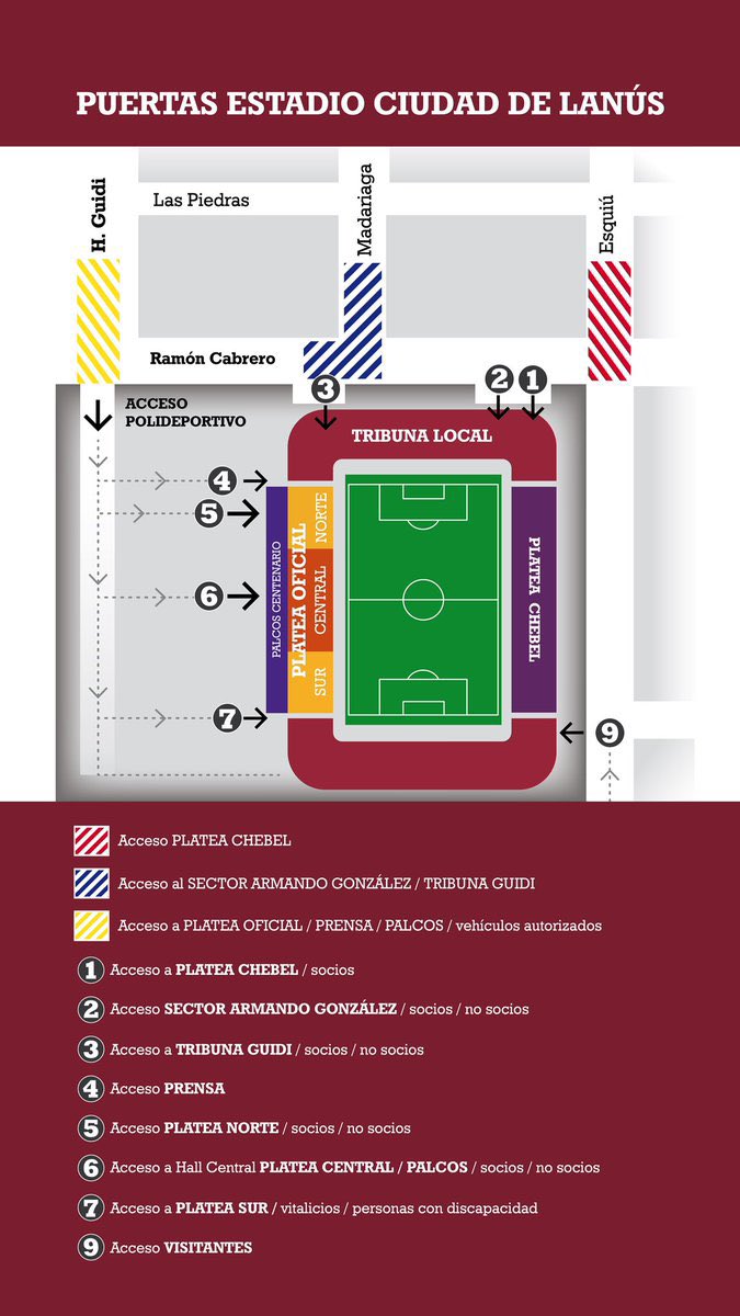 El estadio "Ciudad de Lanús-Néstor Díaz Pérez", popularmente conocido como La Fortaleza, es uno de los recintos más importantes del país. Inaugurado en 1929 y remodelado permanentemente con el transcurso de los años, se ubica en el corazón de la Ciudad de Lanús. Al mismo se puede llegar en los colectivos 266, 278 y 299. De la Estación Lanús (Ferrocarril General Roca) se encuentra a un kilómetro.