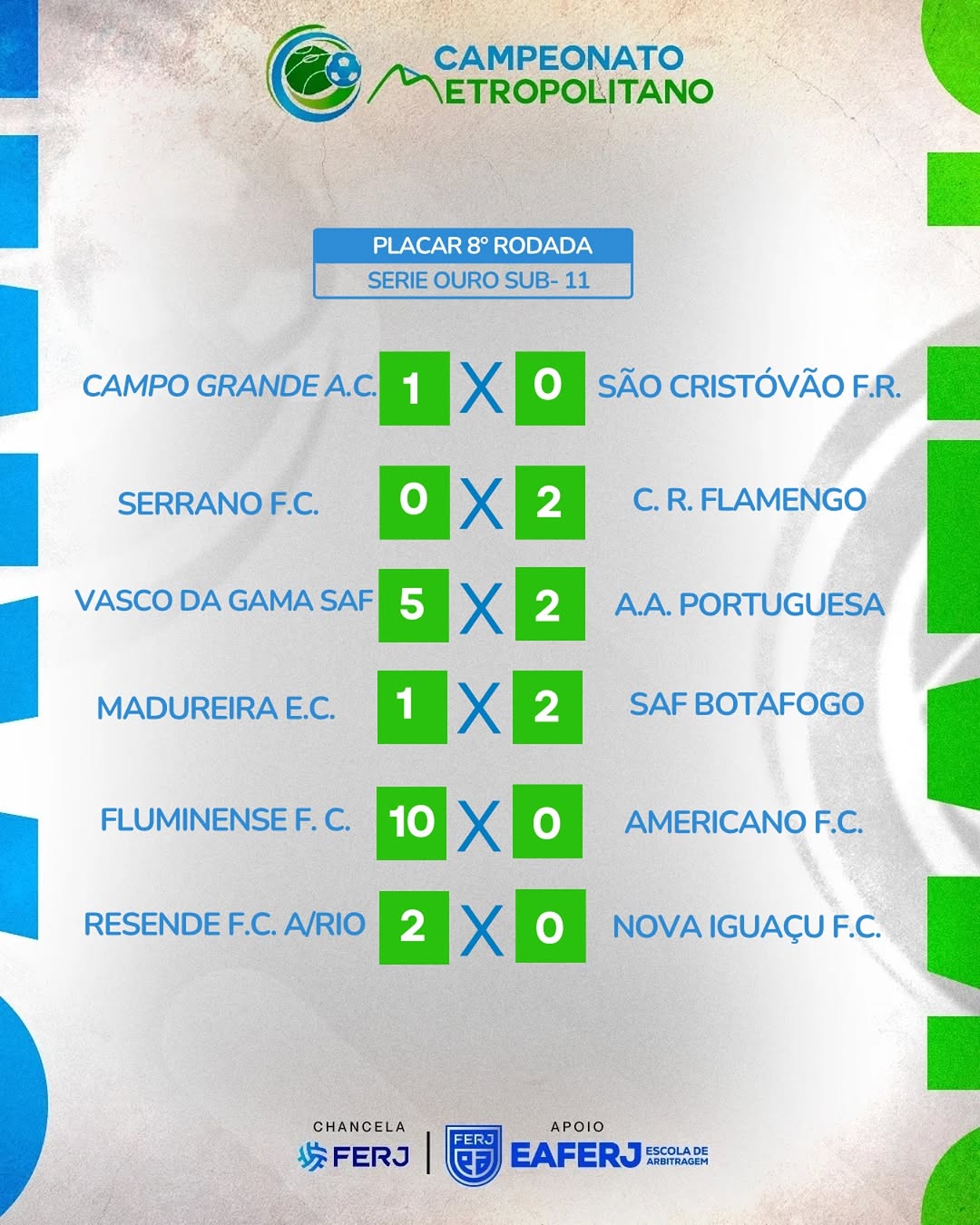 11/05/25 - Vasco empata com o Urubu por 1 a 1 no Sub-09 e perde por 1 a 0 no Sub-10 pela Taça Guanabara