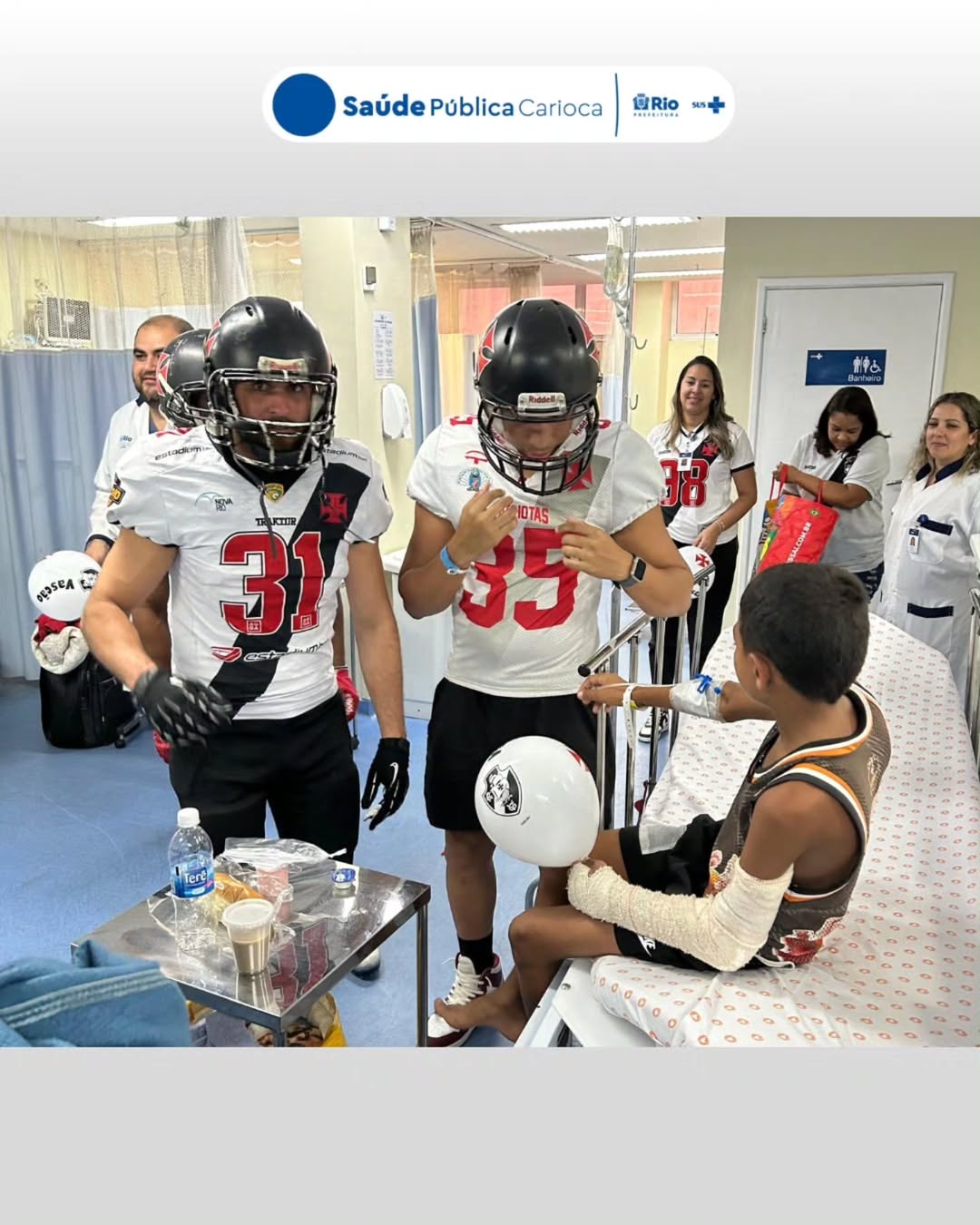 Futebol Americano: Vasco Almirantes fez visita a ala infantil de hospital municipal