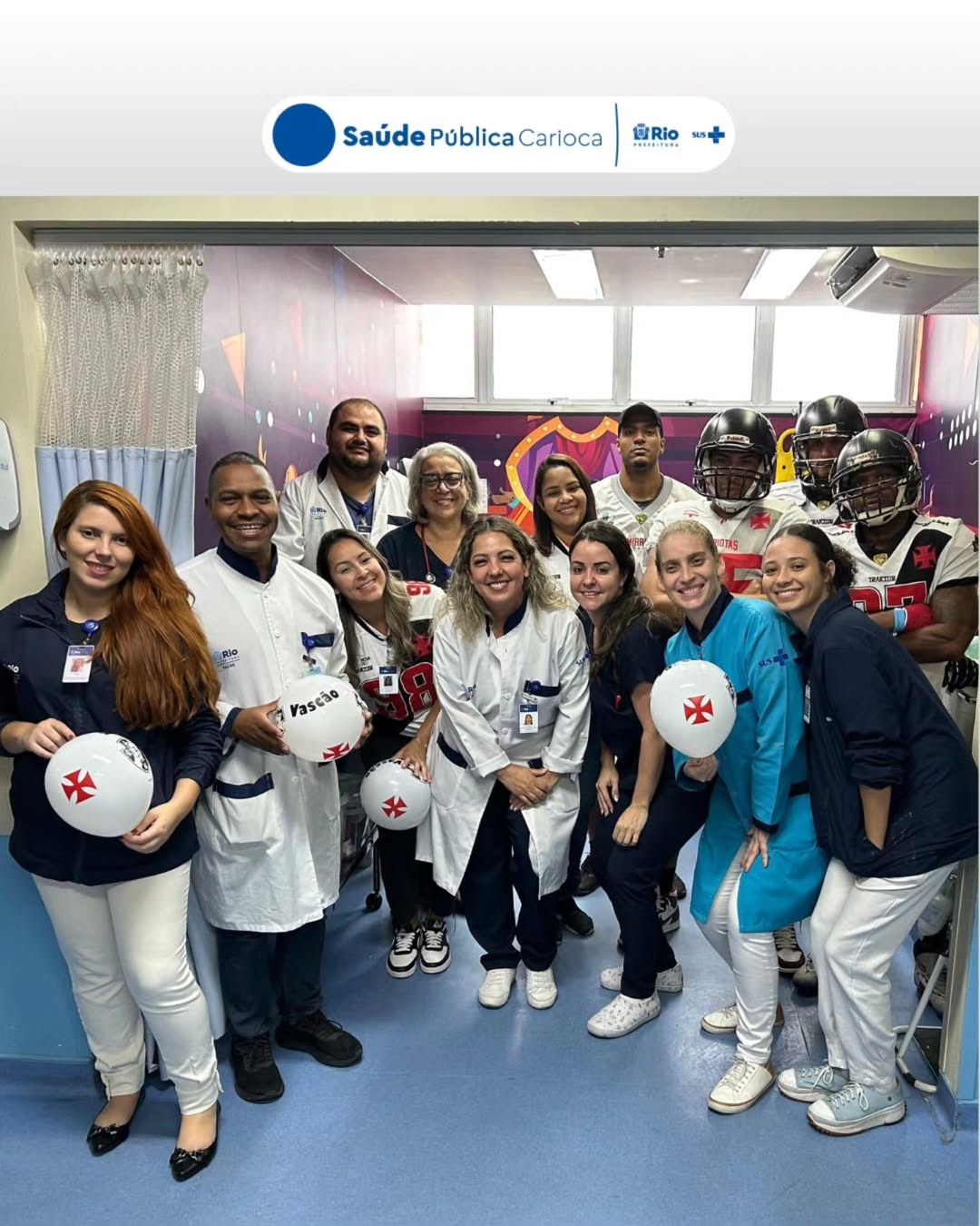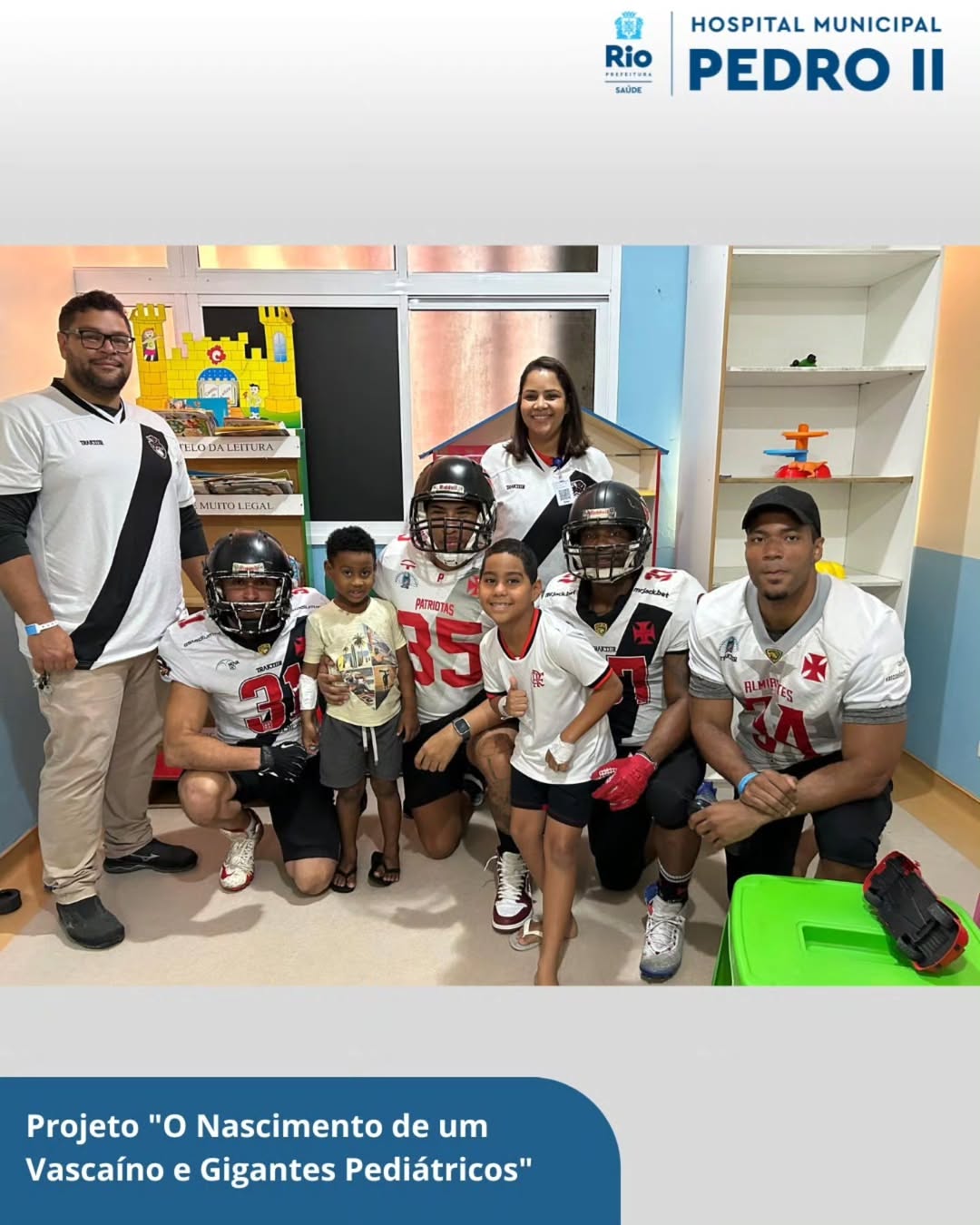 O evento contou com a Presença da Comissão Técnica e Jogadores do Time de Futebol Americano Vasco Almirantes, os participantes distribuíram brindes aos recém vascaínos da Maternidade Luiz Guilherme Pessoa da Silva (HMPII). Para as Crianças da Enfermaria e Emergência Pediátrica!