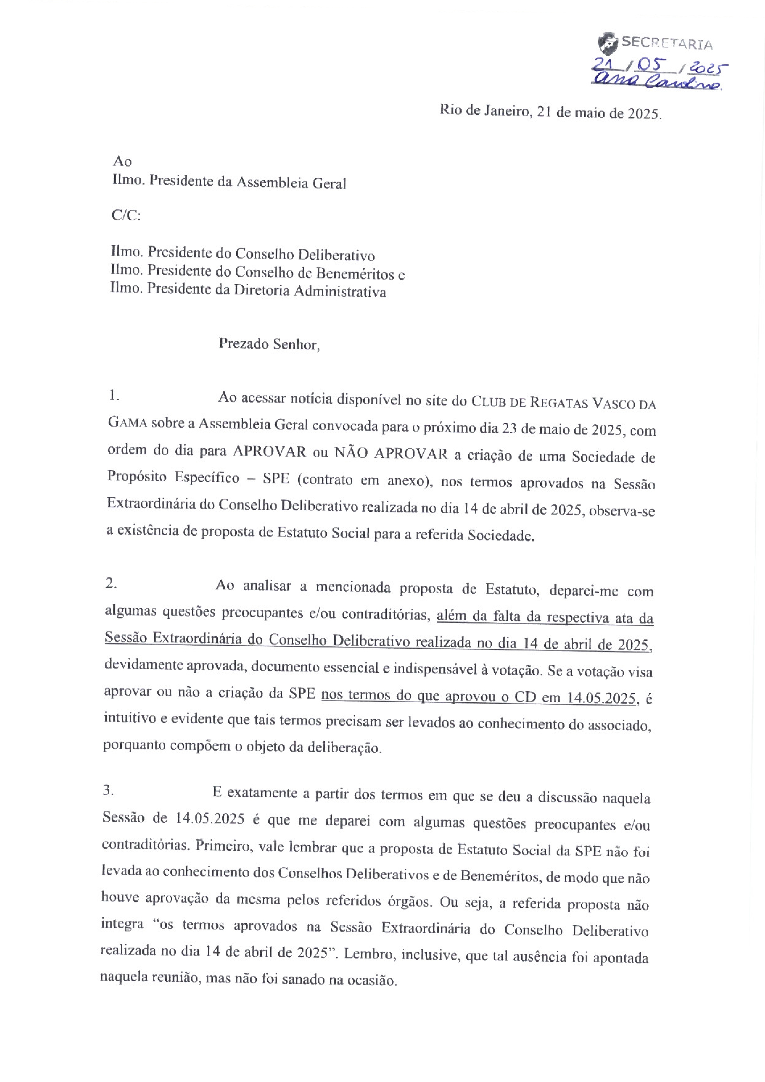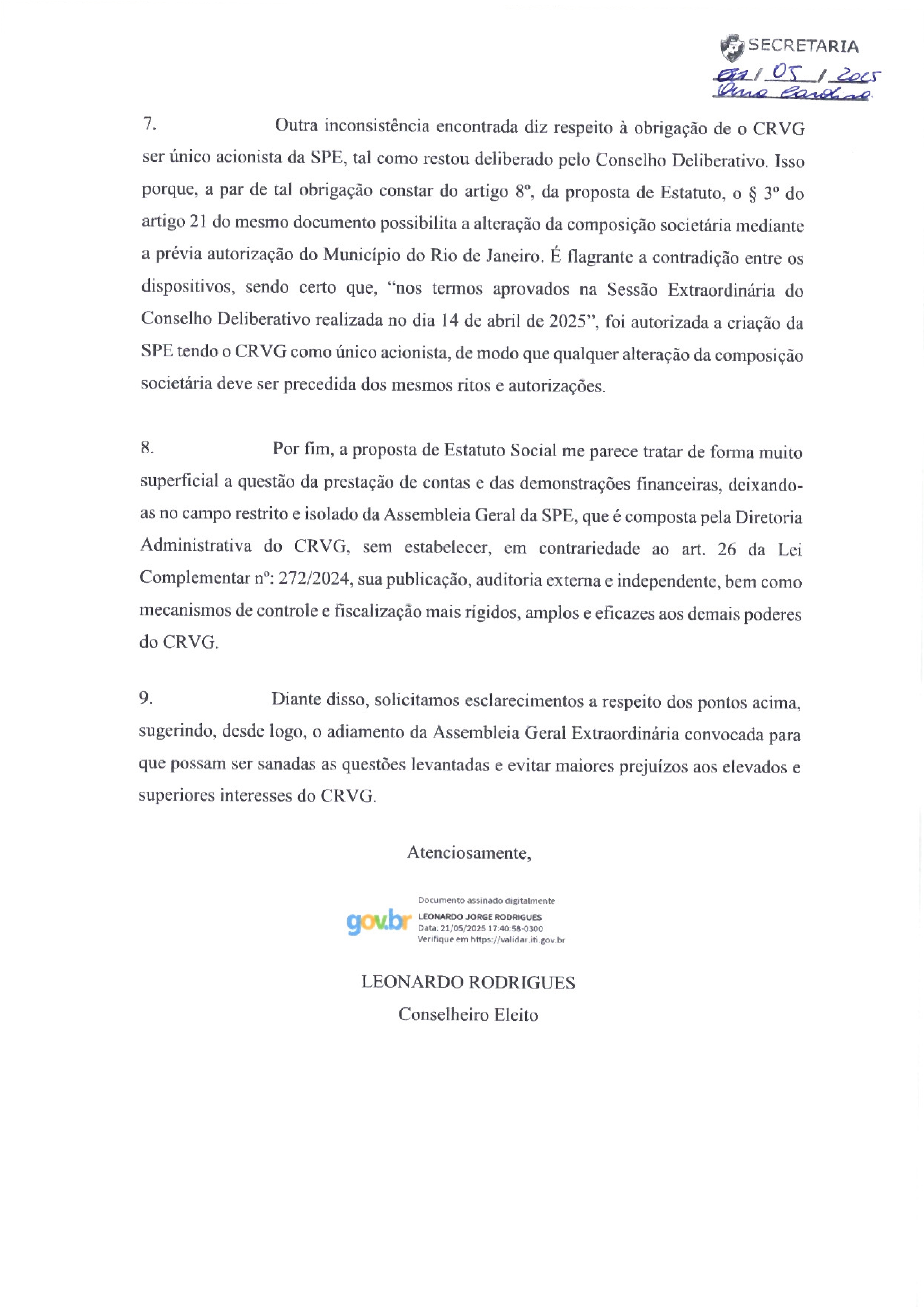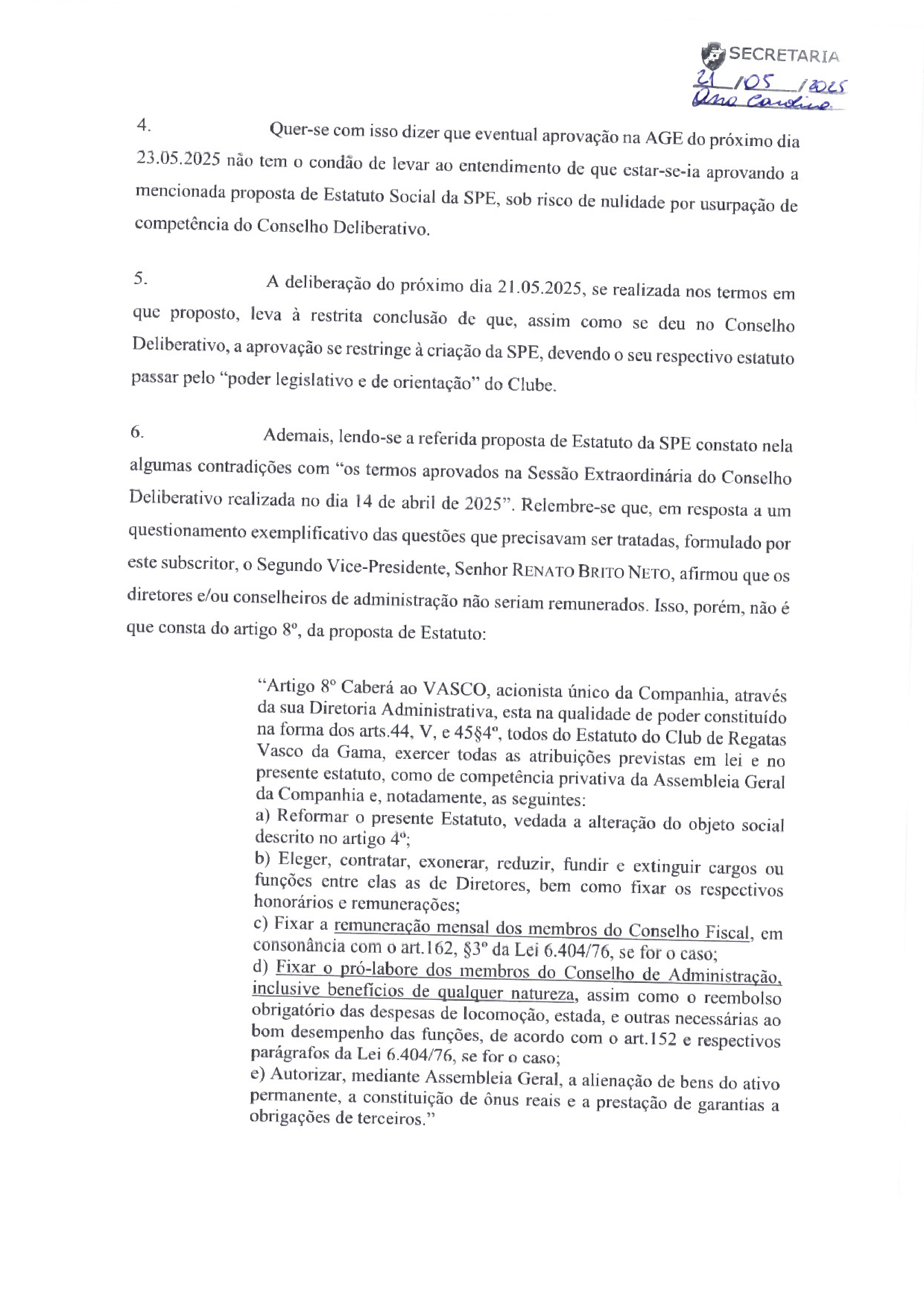 Ex-diretor jurídico Leonardo Rodrigues sugere o adiamento da AGE para esclarecimentos sobre a proposta de estatuto da SPE