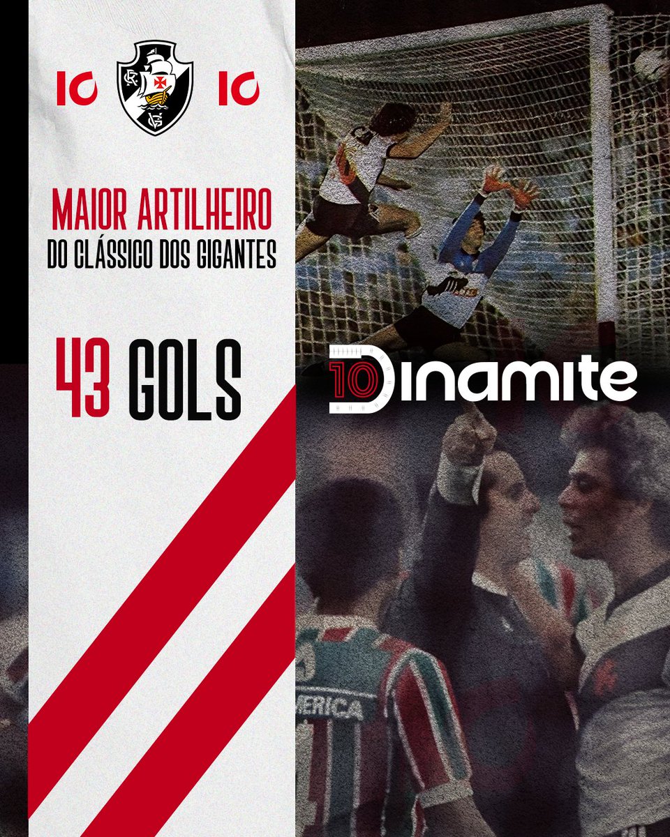 Hoje o @VascodaGama pega a maior vítima do Dinamite: 43 gols e muitas histórias