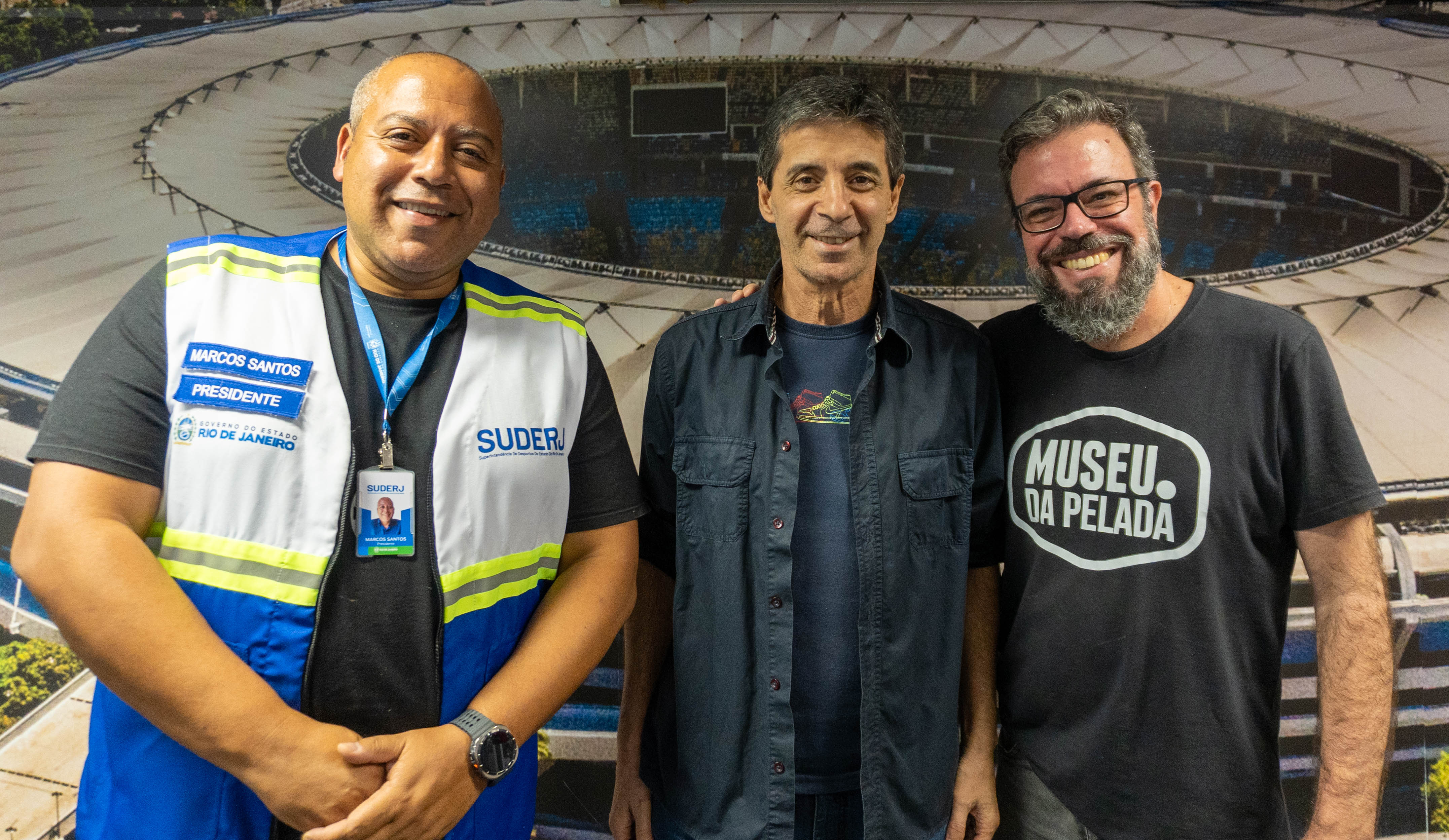 Futebol, inclusão social e histórias. Muitas histórias. Foi assim a visita de Mauro Galvão ao Museu da Suderj, no Centro do Rio de Janeiro, nesta terça-feira. O ídolo de Vasco e Botafogo, com passagens pela seleção brasileira, participou de um bate-papo promovido pelo Museu da Pelada, com participação de Marcos Santos, presidente da superintendência. A gravação irá ao ar no canal que o Museu tem no YouTube e nas redes sociais.