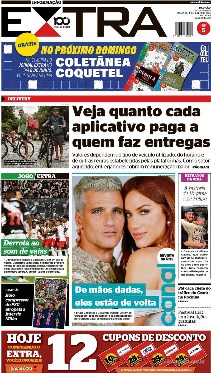 Veja as capas dos jornais após Vasco 0 x 2 Red Bull Bragantino