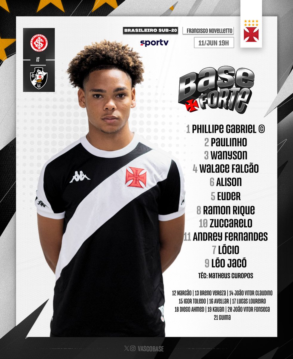 10/06/25 - Sub-20: Vasco divulga os relacionados para o jogo contra o Internacional e situação dos desfalques